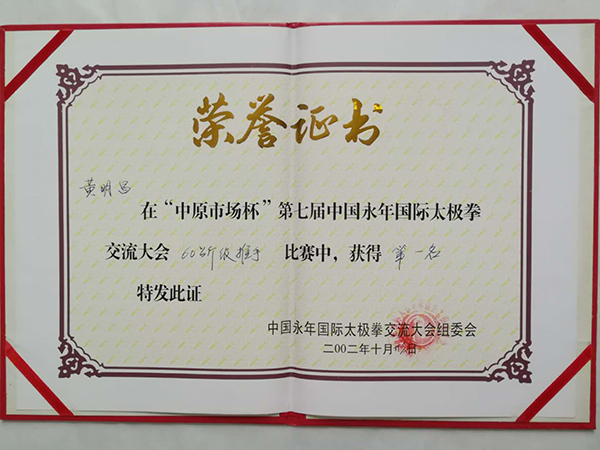 黄明昌,中国当代武术教育专家,中国陈家沟陈氏太极拳第十二代传人;中国永年杨氏太极拳第六代传人;中国峨眉山武术学院特邀武术指导;世界武术拳械推手比赛全能冠军;深圳市龙城高级中学武术高级教师;深圳市龙岗区文化馆太极教师;深圳市知行合一太极文化有限公司“太极禅院”院长兼总教练.