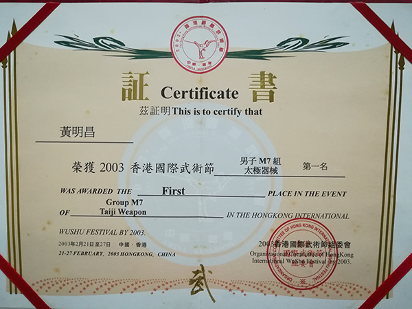 黄明昌精通武术理论、太极理论、养生之道、保健功法、内功修心法、各种武术和太极拳套路、器械、推手、擒拿及散手;专职从事武术和太极拳教学多年,拳理娴熟透彻,教学鲜明得法,讲解深入浅出;其拳架规范严谨有法,动作舒展大方,内劲纯正充盈,并全面地继承传统太极推手和武术散手应用法之精髓。