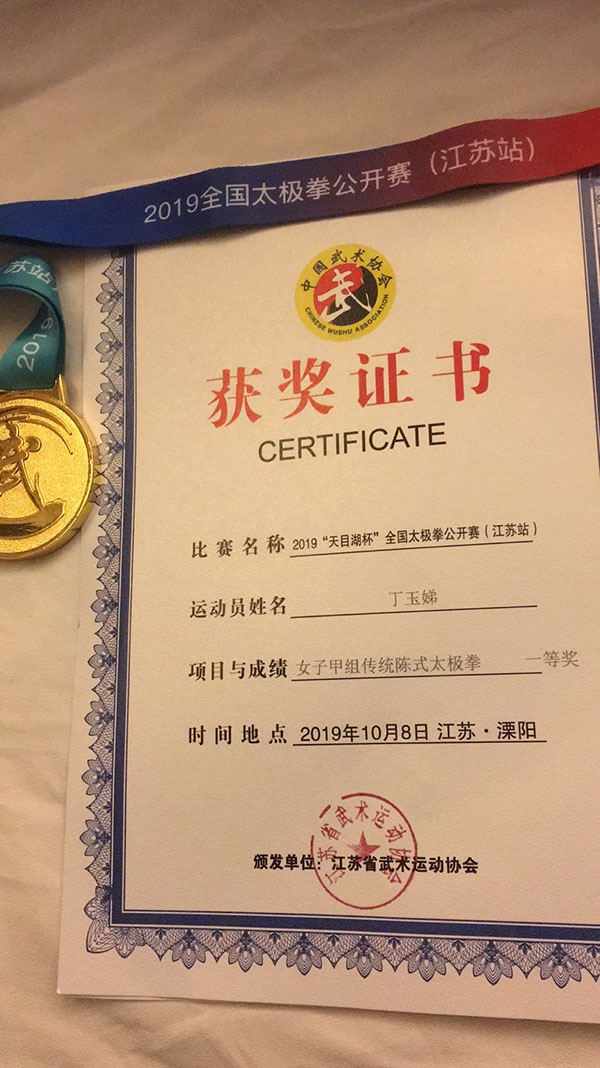 2015年全国太极拳比赛陈式太极拳个人赛第一名。2019年江苏省传统陈式太极拳个人比赛一等奖,传统陈式太极剑个人比赛一等奖,