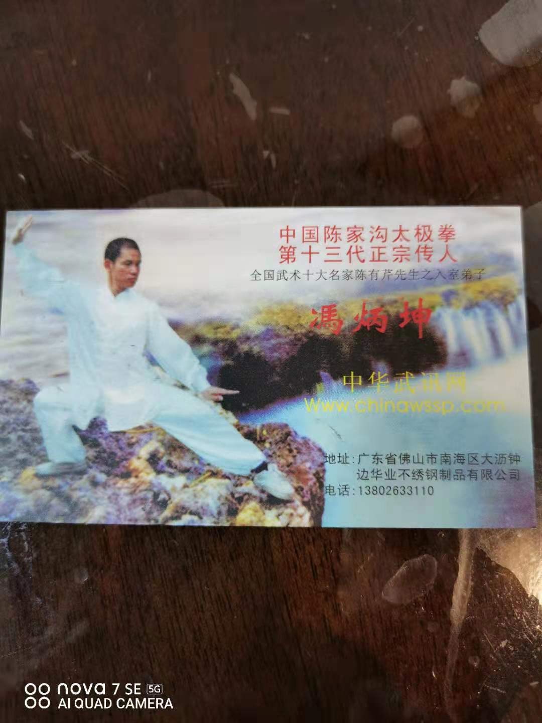 冯炳坤:陈氏太极拳第十三代承传人。祖籍广西,现定居广东佛山,2005年跟随陈氏太极拳第十二代嫡宗传人陈有芹师父练习陈氏太极拳,由于勤学苦练得到师父的喜爱,2008年正式拜师入门,得到师父精心培养,在参加太极拳比赛中获奖多次。