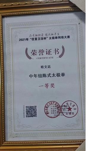 2021年“优普卫浴杯”太极拳网络大赛荣获中年组陈式太极拳一等奖、最佳人气奖;