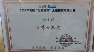 2021年首届“尘耘观杯”太极精英网络大赛荣获中年组陈式太极拳一等奖、陈式太极器械一等奖、最佳人气奖,并荣获“优秀领队奖”;