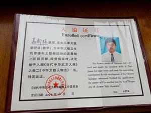 一九九四年获太极拳师证书,二0一三至二0一七年为第二届马虹杯全国联谊赛组委会成员从学弟子,在马虹杯联谊赛和网络赛中获一等奖,二0一七年获温县发太极拳传播使者证书。