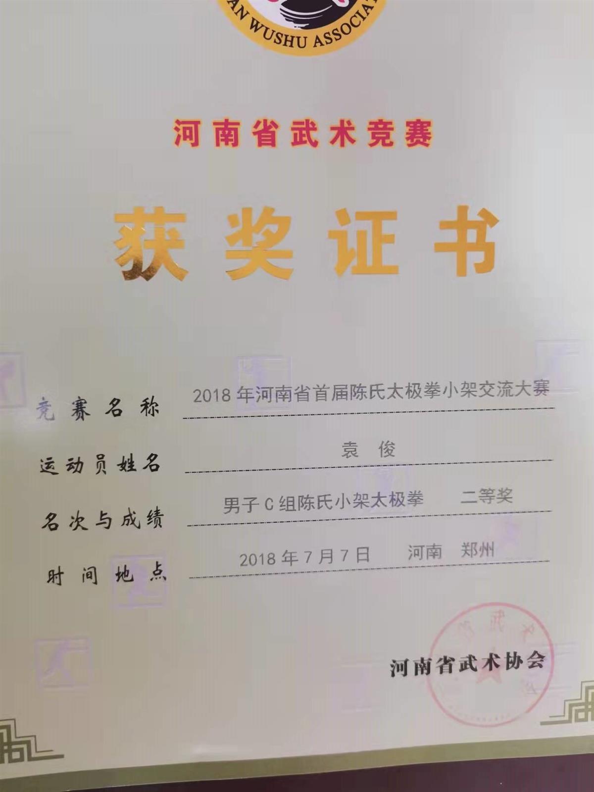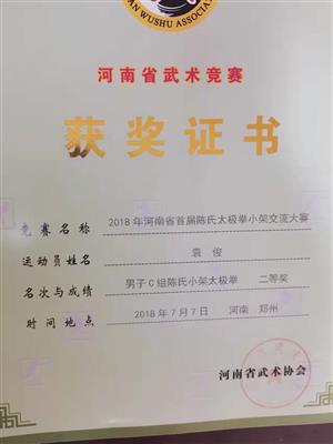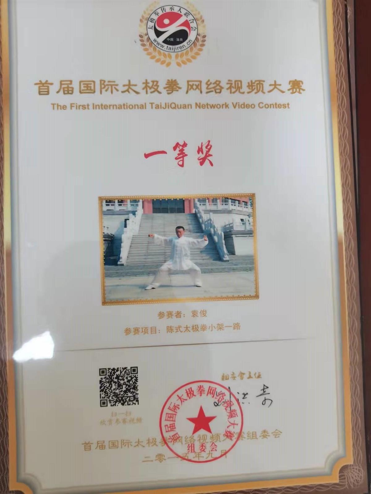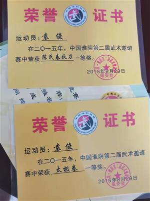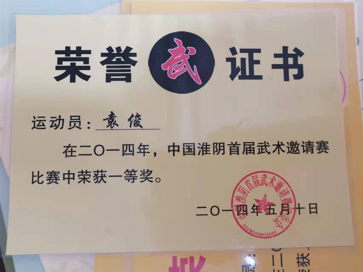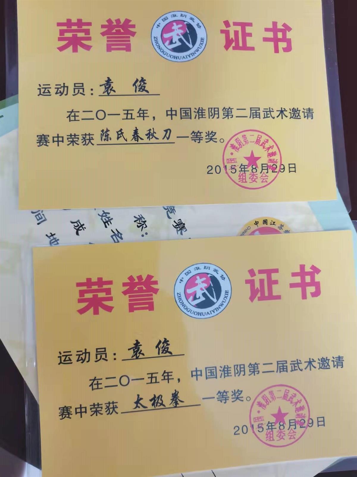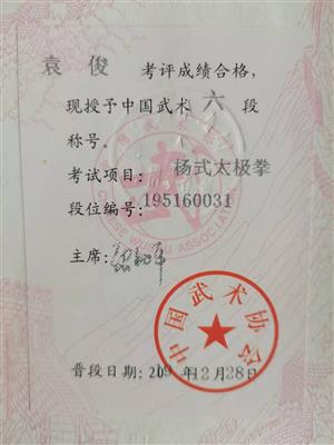 袁俊,从1987.11跟本地武术教练孙永林老师练习少林拳、梅花拳、罗汉拳、截跃拳等各种拳术及刀、枪、棍棒等各种器械,2004.2偶遇陈伯祥大师的弟子李叶民师父跟其学习陈式小架太极拳及太极推手散手各种技法,2011.2在淮安市陈家沟武术培训基地受聘于业余教练带出了一批又一批优秀学员!