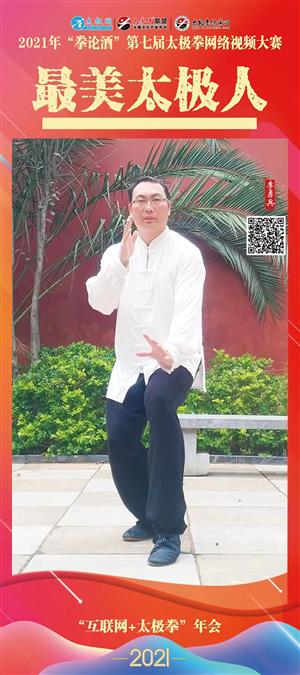 在山东农业大学上大学时,偶遇孟令忠教授,孟教授精于陈式太极拳拳理拳法,懂阴阳之道,功夫纯正,发人于丈外,应者立扑,阴阳二劲组合使用,令人称奇。为研究传武功法,我大一就开始跟其习练陈式太极拳,听其言,日夜操练不断研究拳理拳法,换劲成功,守中护中,养浩然正气,强健体魄,修心养性。至今已习练陈式太极拳第18年,对陈式太极拳缠丝劲功夫略有心得, 在太极拳申遗成功元年,于2021年3月开始参加太极拳网络比赛,之前从未参加比赛。